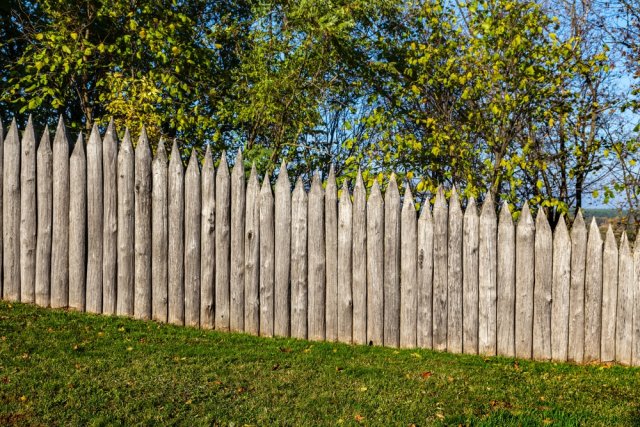 - Частокол: Массивные бревна, напоминающие крепость. Надежная защита, но затеняет участок.