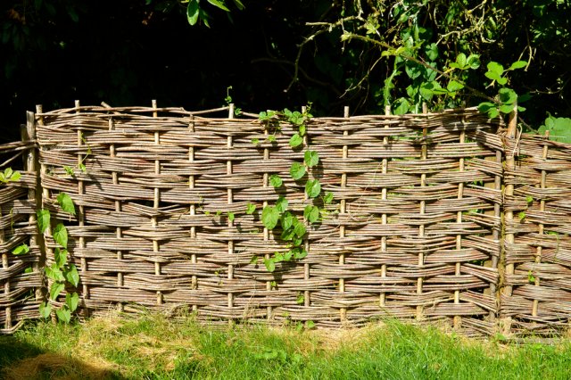 - Плетень: Из гибких веток ивы или орешника. Для этнического стиля, подходит для зонирования.
