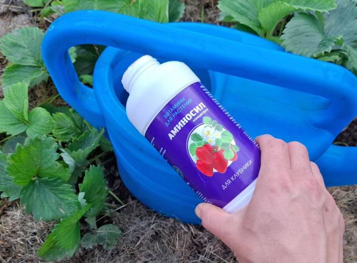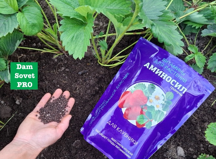 Рекомендуем комплексные гранулированные удобрения, такие как Аминосил для клубники. Они содержат полный набор элементов (азот, фосфор, калий, кальций, магний, железо, марганец, цинк, серу, медь, бор, молибден), плюс гуминовые кислоты и аминокислоты. Эти компоненты действуют постепенно, улучшая иммунитет растений и почвенную микрофлору.