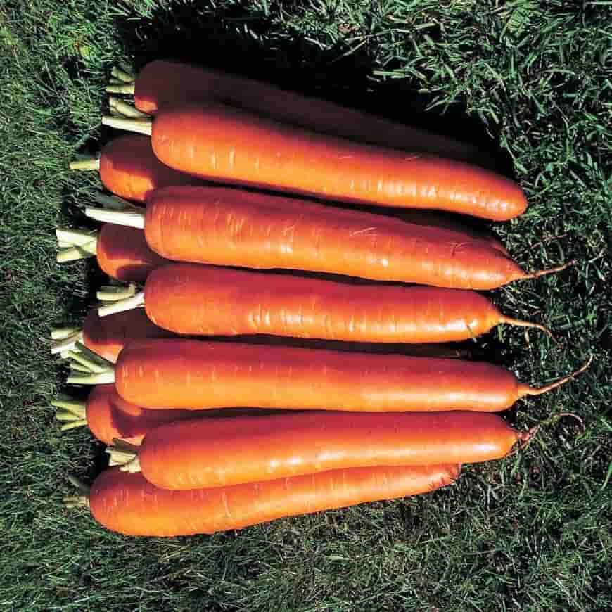 - Канада F1. Мощный и надежный среднепоздний гибрид сортотипа Шантане/Берликум. Корнеплоды крупные, выровненные, очень плотные. Этот сорт — мой фаворит для заморозки. Я нарезаю его кубиками или тру на терке — зимой это настоящая палочка-выручалочка.